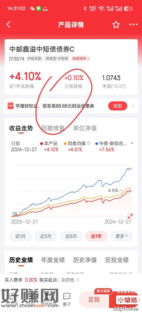京东金融搜013574 领5万-88 7天 中风险债基 怕跌的就不要买了