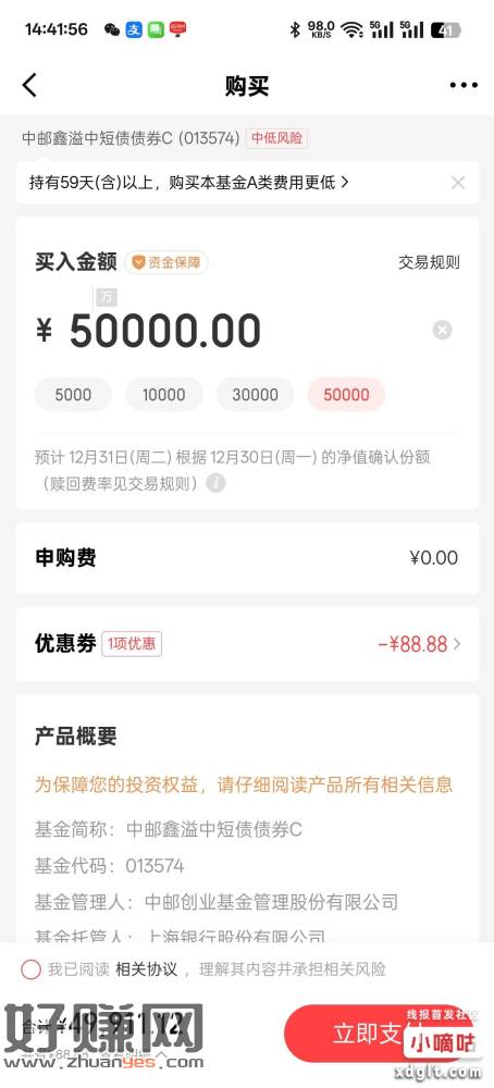 京东金融搜013574 领5万-88 7天 中风险债基