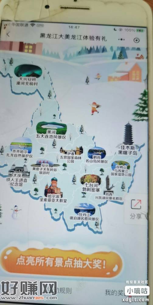 黑龙江大妈不限卡,工行服务小程序!地区黑龙江!!横幅龙江印象。所有的景点都要点亮才可以抽奖!直接点就好