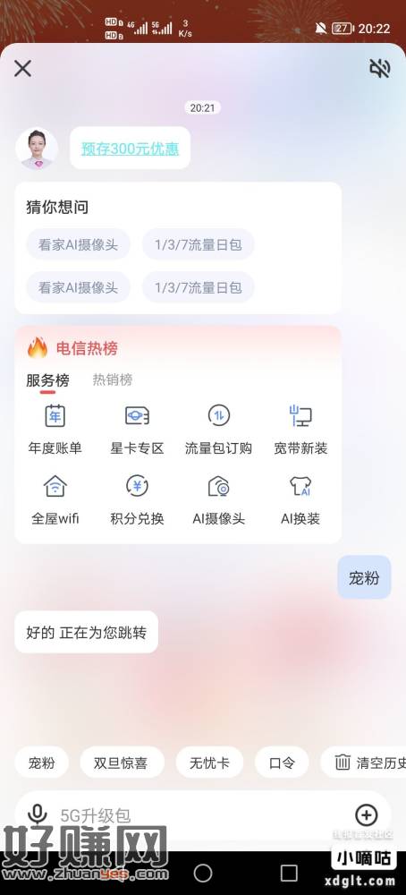 广东电信周三超级宠粉日,电信首页搜索框发送宠粉。基本必中10G流量
