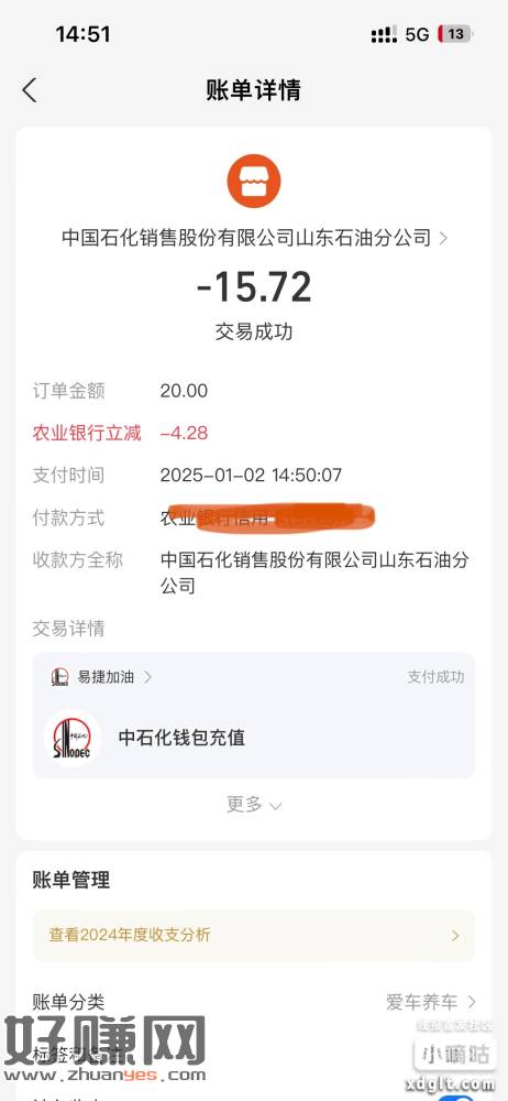支付宝易捷加油石化钱包充值,满20随机立减,山东地区农行信用卡出,速撸