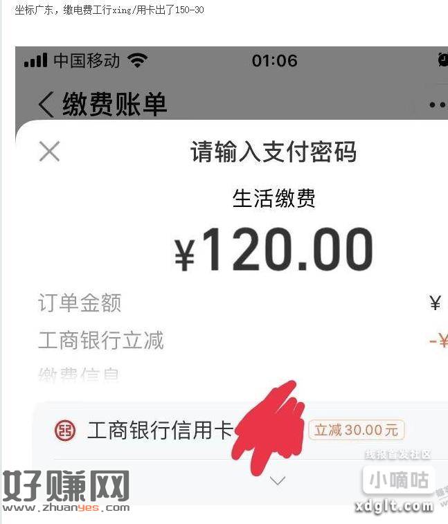 工行xing/用卡支付宝缴电费减30又有了,广东有