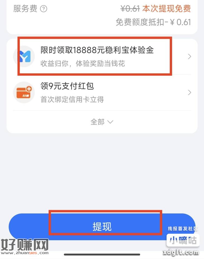 底部会有显示18888稳利宝体验金,有的人可以进去领