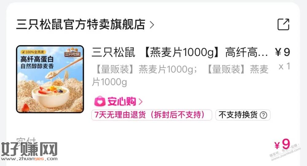三只松鼠高纤燕麦片 2斤 9元包邮 速度