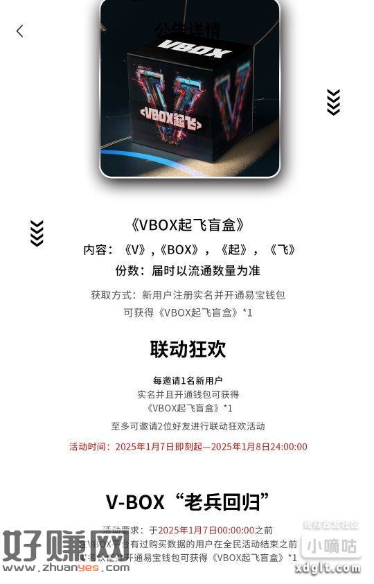 vbox数藏新人,去鱼2r出,开钱包不用钱,自己能领一个盲盒