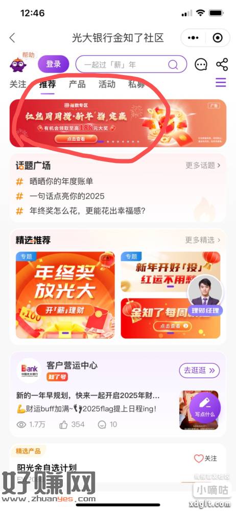 光大金知了社区,图1,按进去,完成任务,抽了0.5,0.5,
