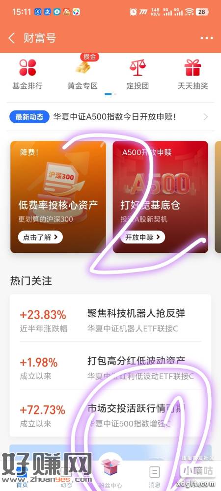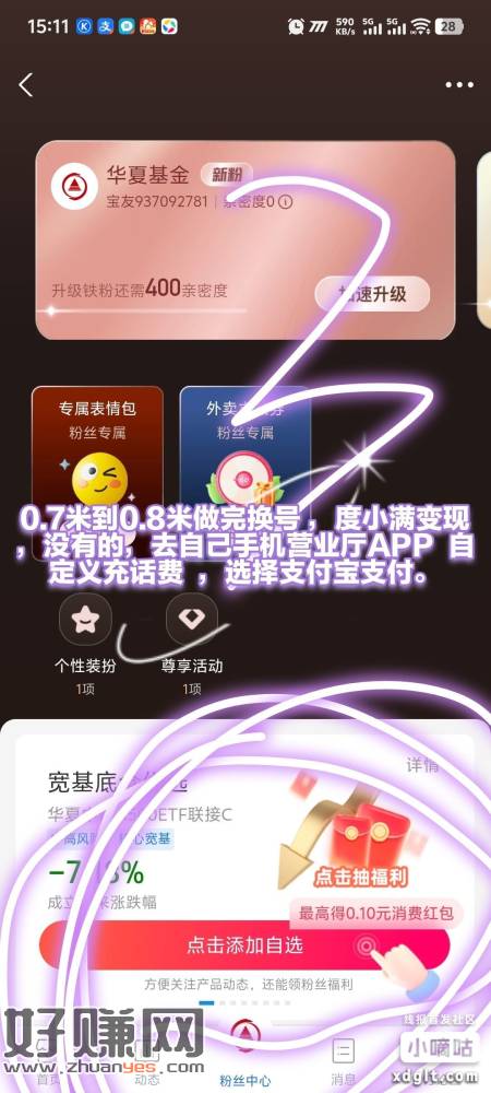 支付宝搜:华夏基金财富号-粉丝中心,加自选,一号0.7