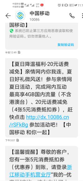 中国移动5元话费+1元5G流量