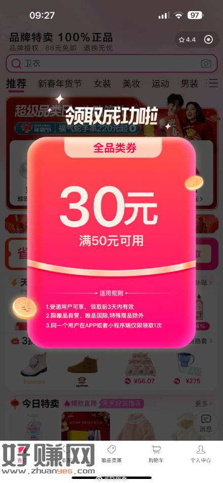 反馈。唯品会小程序长期不用,登陆送券