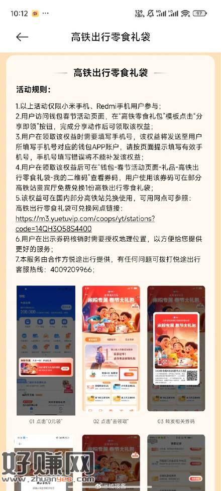 小米手机,钱包,领一瓶饮料和四袋零食,限制部分高铁站