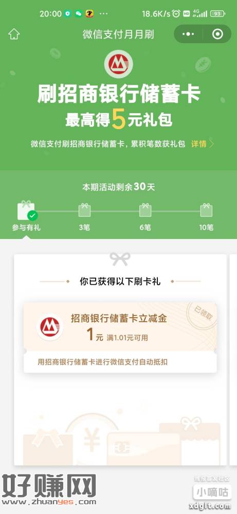 刚刚买东西的时候弹出来一个招商银行的月月刷怎么才能分享出来给老哥们