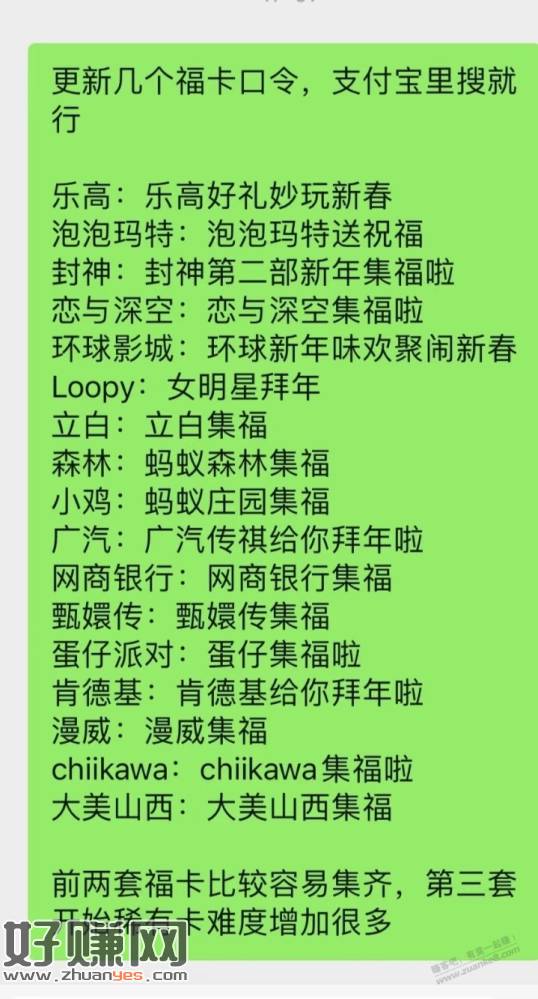 支付宝福卡口令合集
