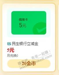民生-5微信立减金 20金币兑换