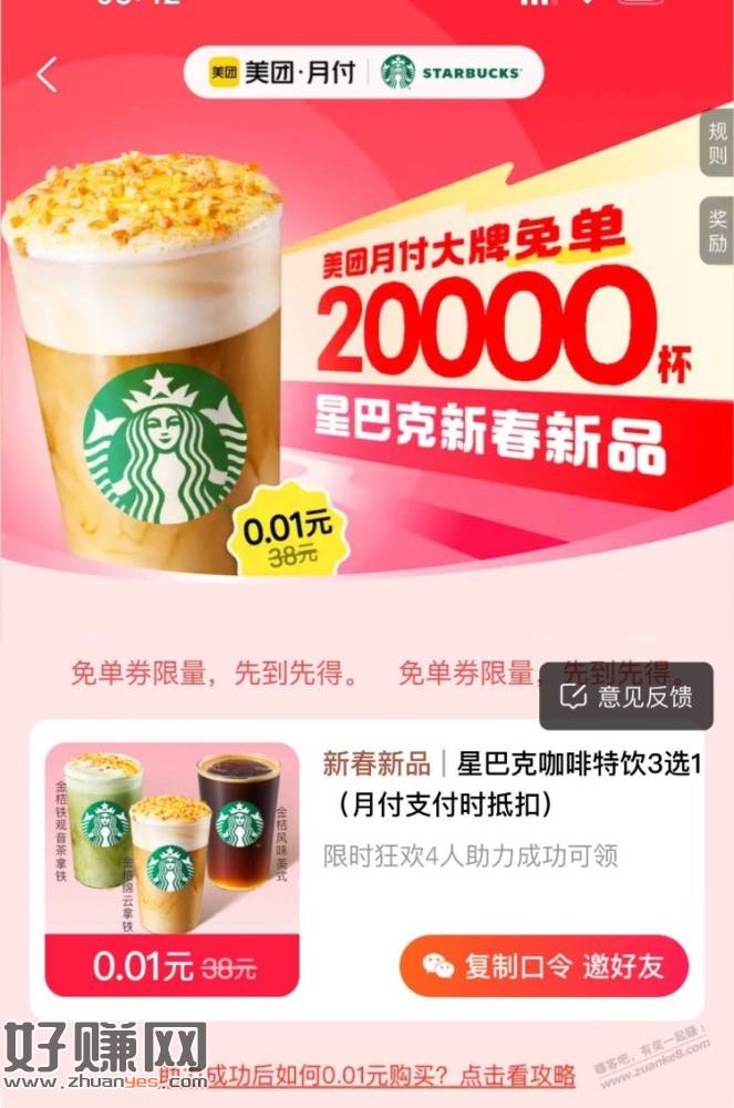 美tuan搜丨月 付大 牌兔単 邀4人助力 星巴克3选1 自己看看有无刚需哈