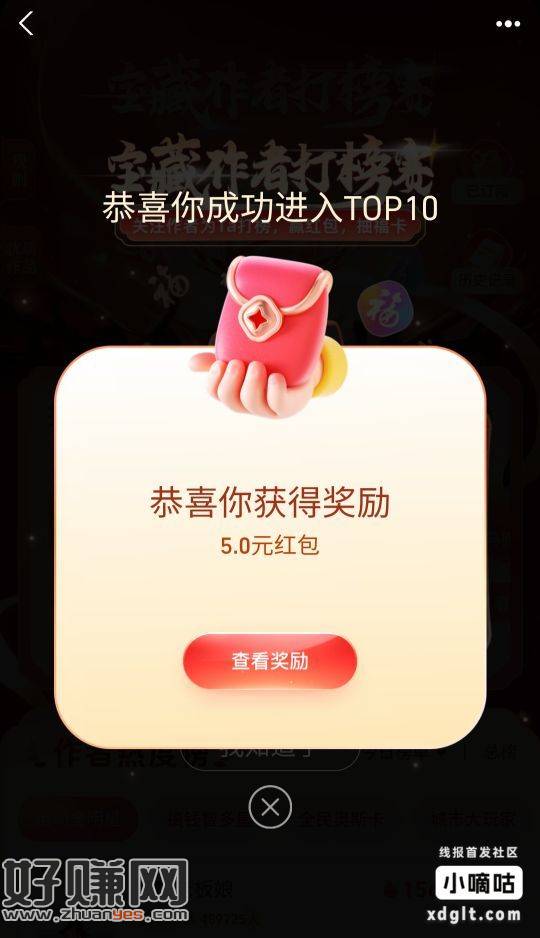 100获得条件,要作者邀请,且作者在分赛道前10,一个作者20个随机名额,这个要扫作者码,去xs上找,找前10的没有前10的没用,这个是随机抽取,昨天没搞这个心痛