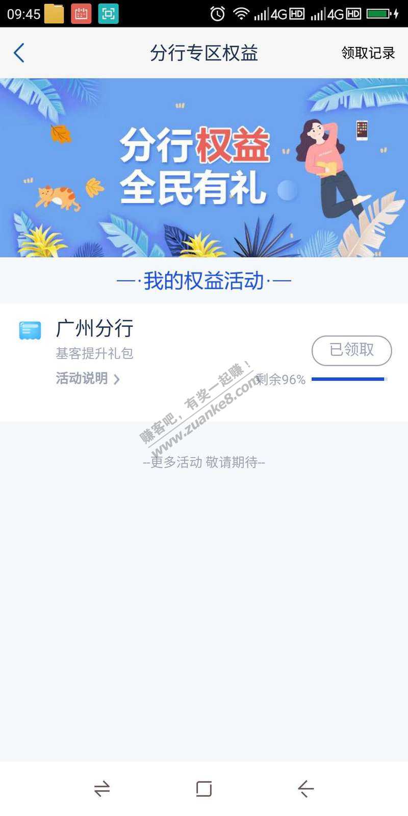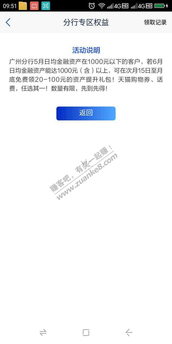 浦发app 热门活动最下面 分行专属权益,点开里面广州分行 提升红包,有20,50话费,100天猫红包三选一。。