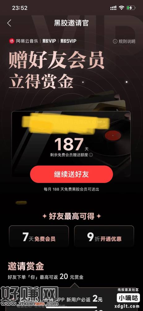 黑胶邀请官 春***f 送你网易云音乐会员卡,领取享20+会