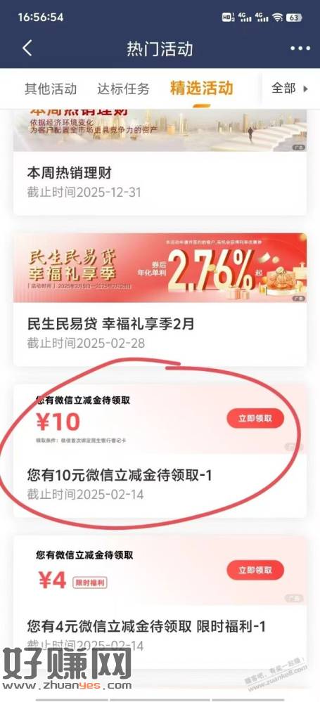 民生银行-精选活动-下拉领10,应该有卡的都有