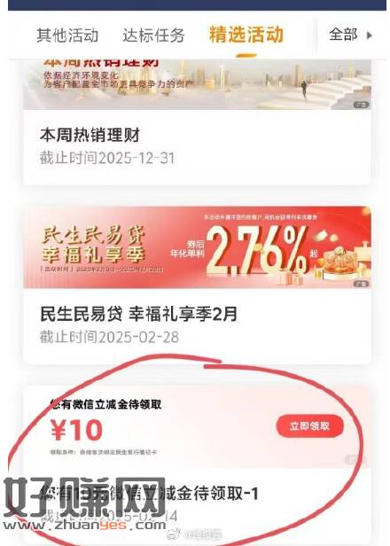 民生银行-精选活动-下拉领10