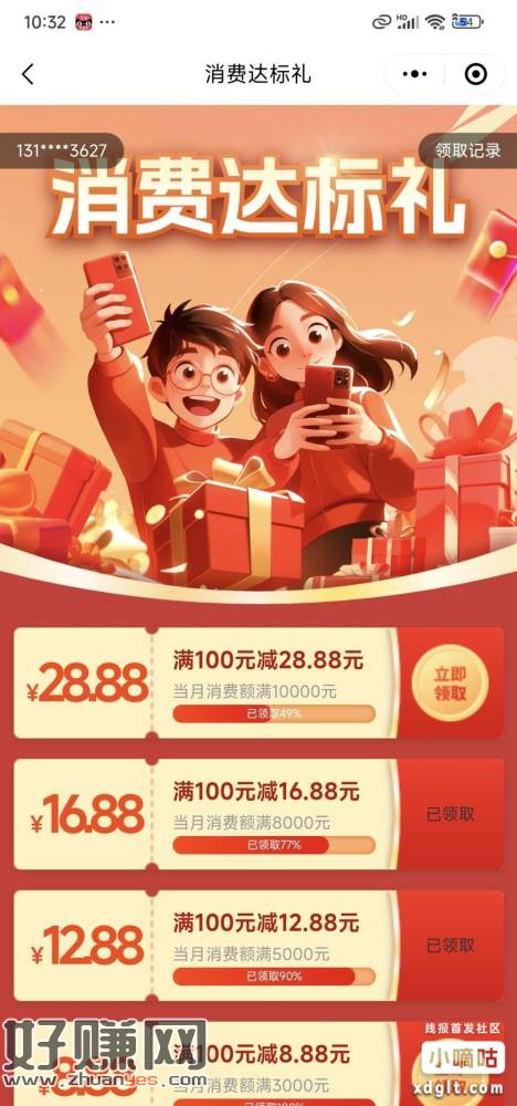支付宝积分兑换2+1元食神卡爆涨券 7天有效