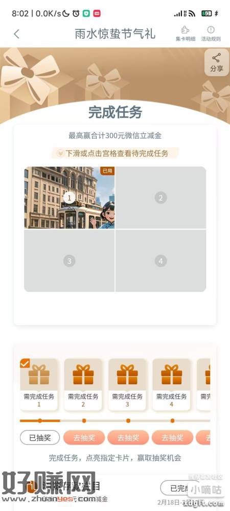 工行APP--首页搜索“任务中心”--节气礼--抽1-100