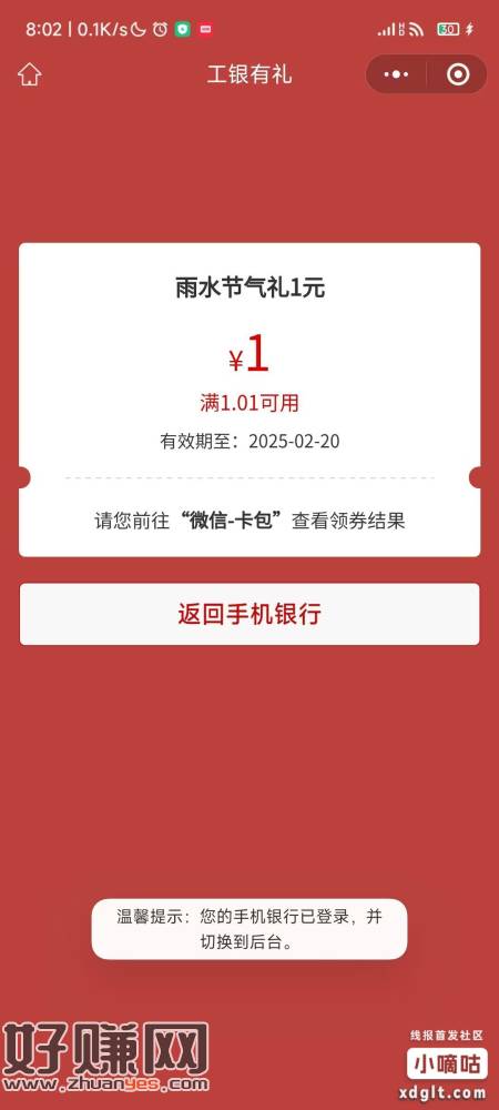 工行APP--首页搜索“任务中心”--节气礼--抽1-100立减金--