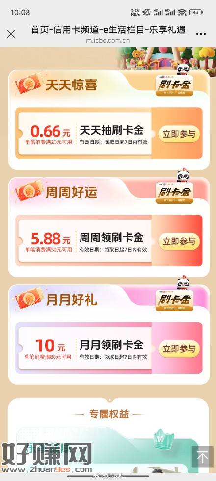 工行m4可领刷卡金