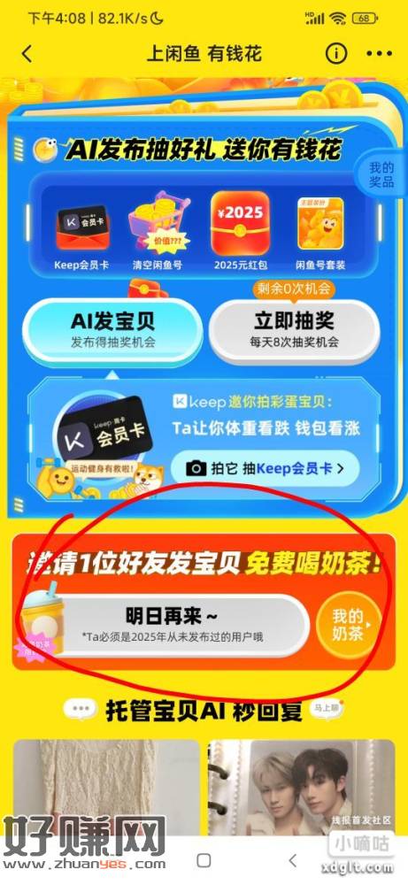 闲鱼邀请今年没发过闲置的,得15奈雪的茶券,可出