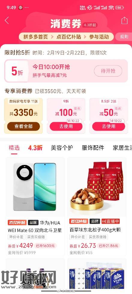 PDD-百亿补贴-消费券,10点,12点,14点,18点,20点,有五折券