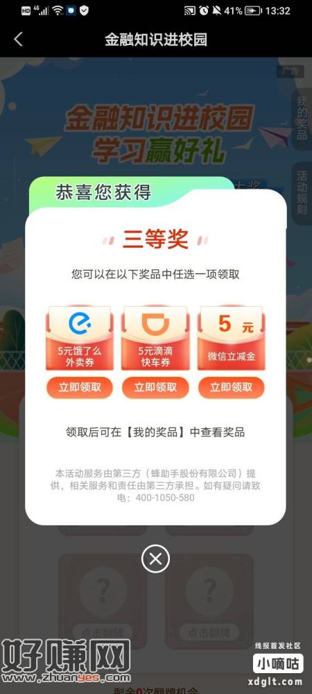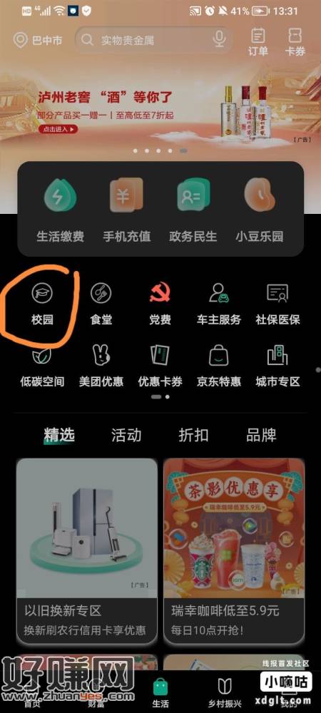 保底5立减金,农行在四川的,底部生活进去,如图!