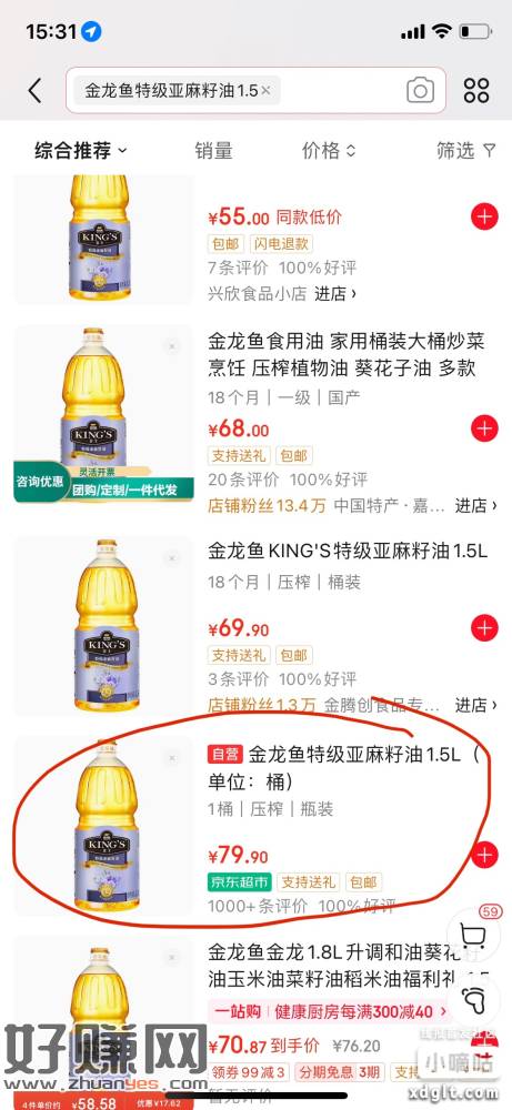 南京银行,鑫福生活,鑫动权益,下拉到底部新客专区,第一个惊喜券集锦,使用2月精选商品低价购资格券,可以19元购买价值45元(京东69.9元)金龙鱼1.5L特级亚麻籽油,貌似特邀用户专享,都去试试