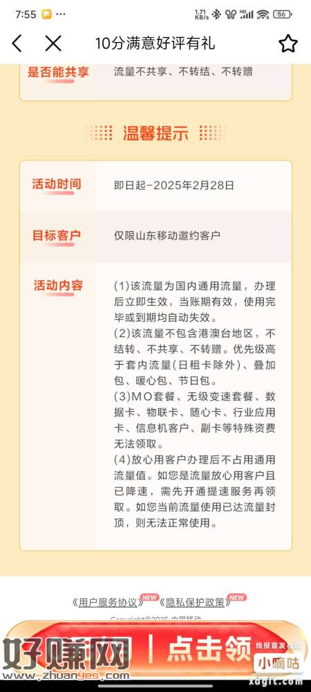 今天看到中国移动首页有一个关怀礼包,直接能领5gb流量,大家有需要的可以去试一下,上面写的是限山东特邀用户