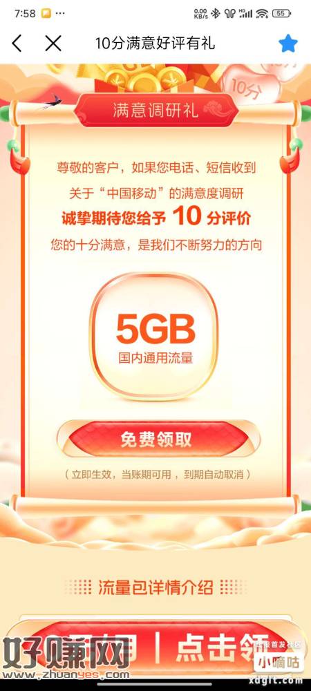 山东移动app直接领5gb 5g专属流量(山东)