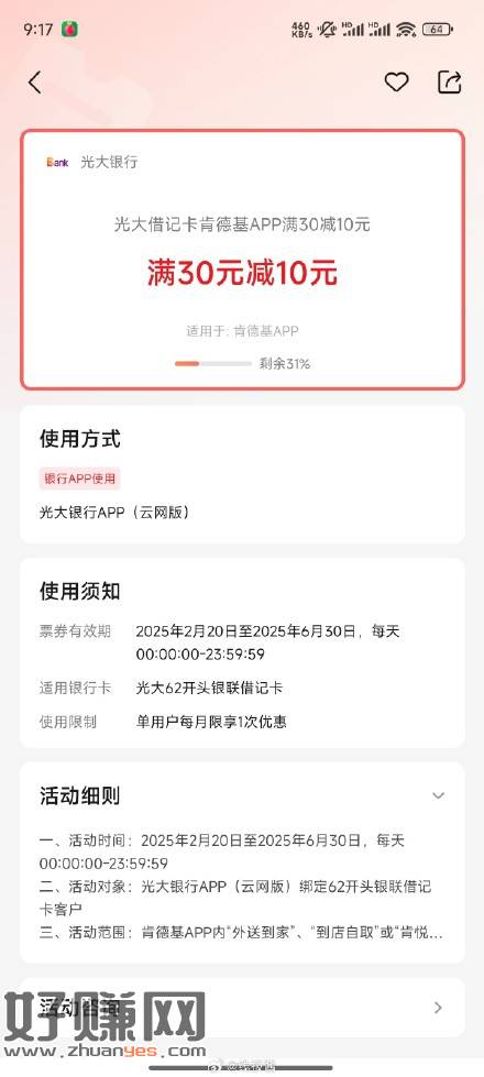 肯德基光大银行30-10,还有,叠加周末有疯狂拼
