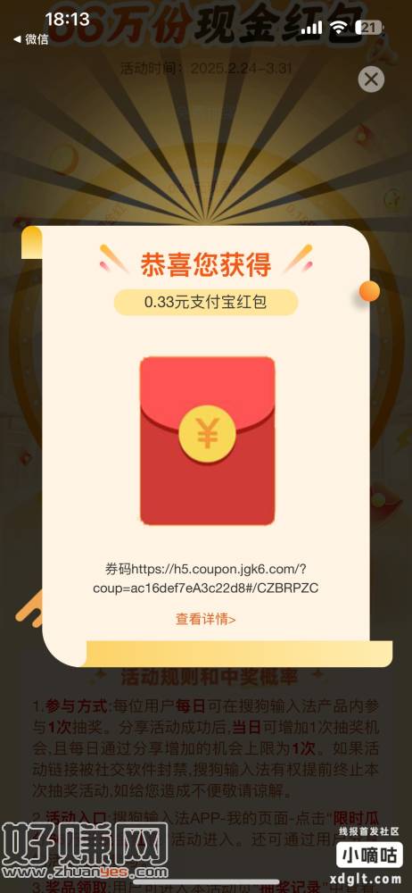 搜狗输入法现金 无头 一天两次机会(分享加一次)必中