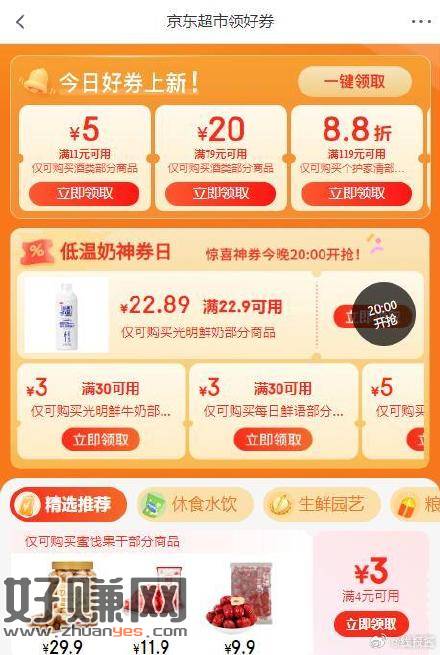 20点鲜奶券