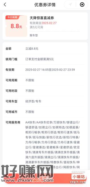 百度打车8.8无门槛打车券