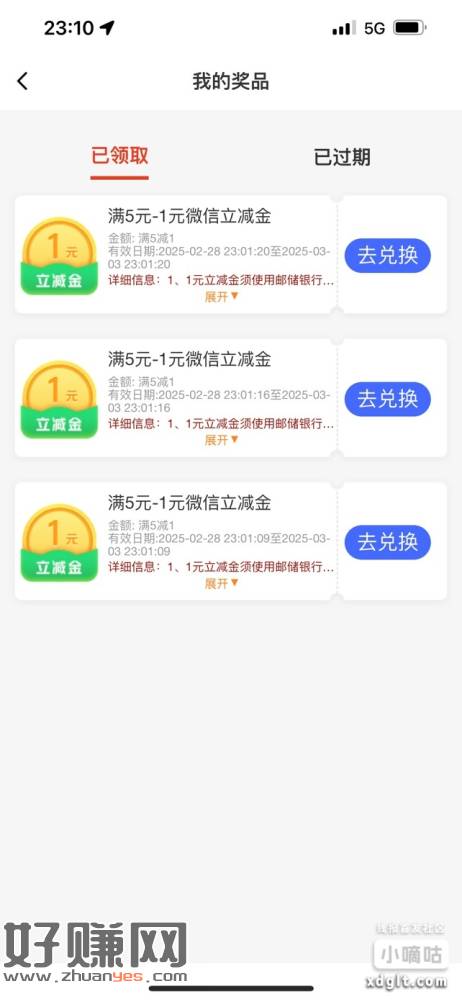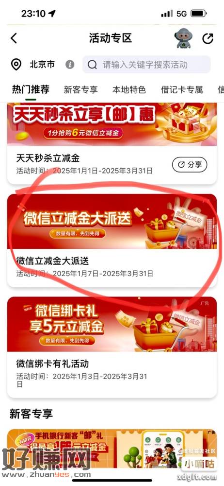 邮储-我的-活动专区下拉 刚才领五的 上面还有一个