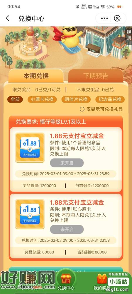 中国银行 福仔 兑换中心 自己选 一个月一次