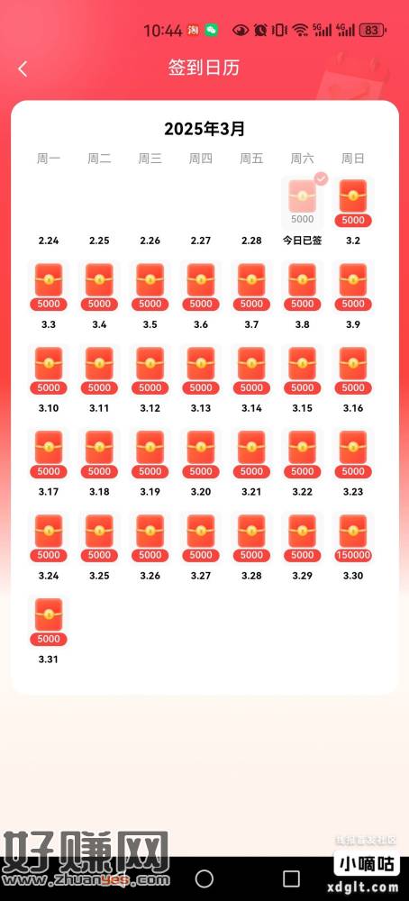 1.每天签到5000积分,60天签到得29W5积
