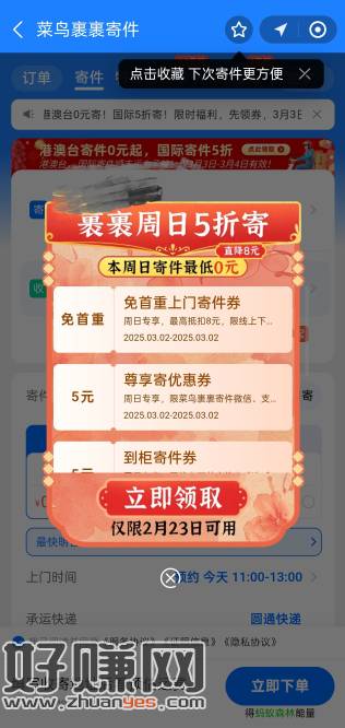 菜鸟免费寄件