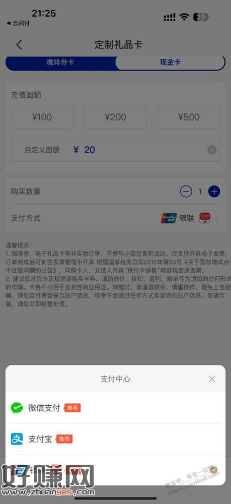 刚买了20礼品卡,减了7块多
