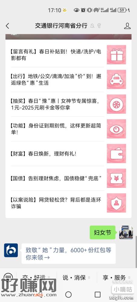 交通银行河南省分行,公众号,回复,妇女节,进去玩连连看抽