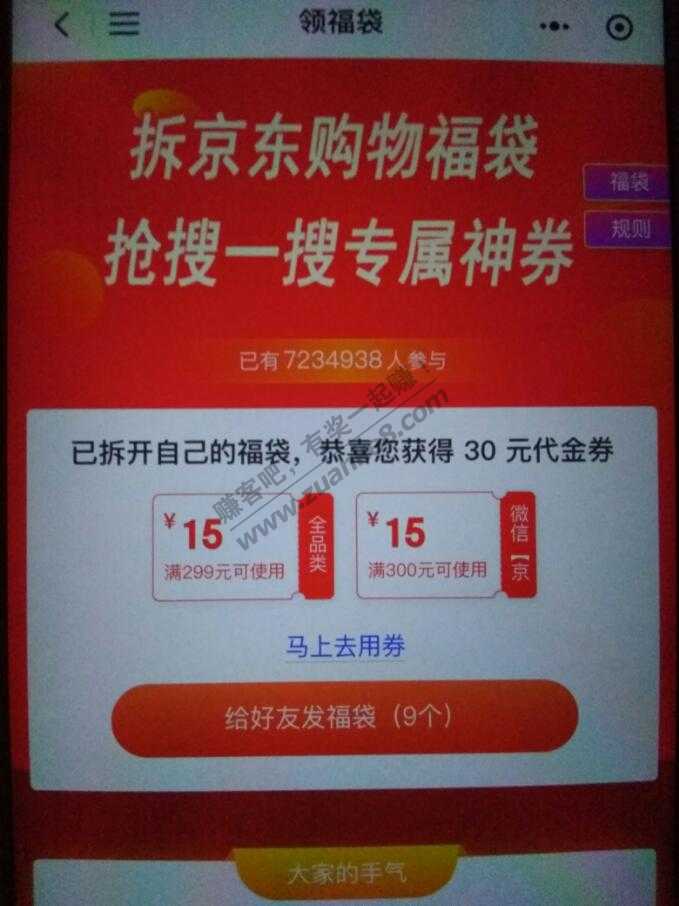 路径,微信里京东购物小程序,滚动广告拆购物福袋,拆得全品券。好用请加果