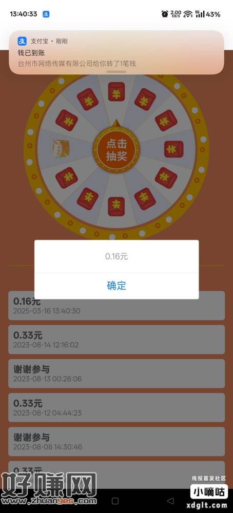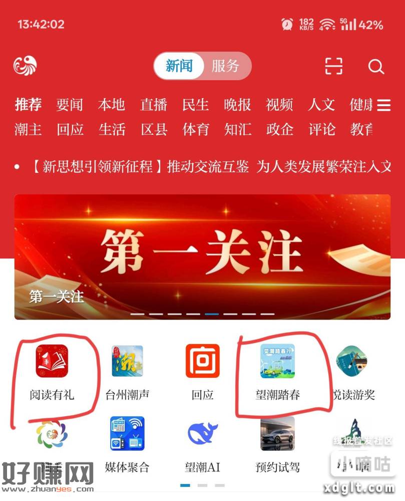 望潮APP,首页两个活动,每天都可以抽,非必中。