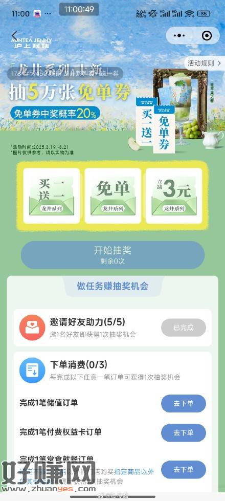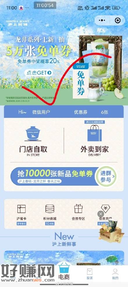 沪上阿姨小程序,首页有下单或者助力抽免单