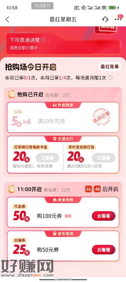 11点交行买单吧,有五折美食或加油五折
