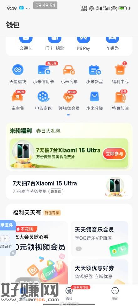 小米钱包APP首页横幅----米粉福利每天随机一台Xiaomi 15 ultra
