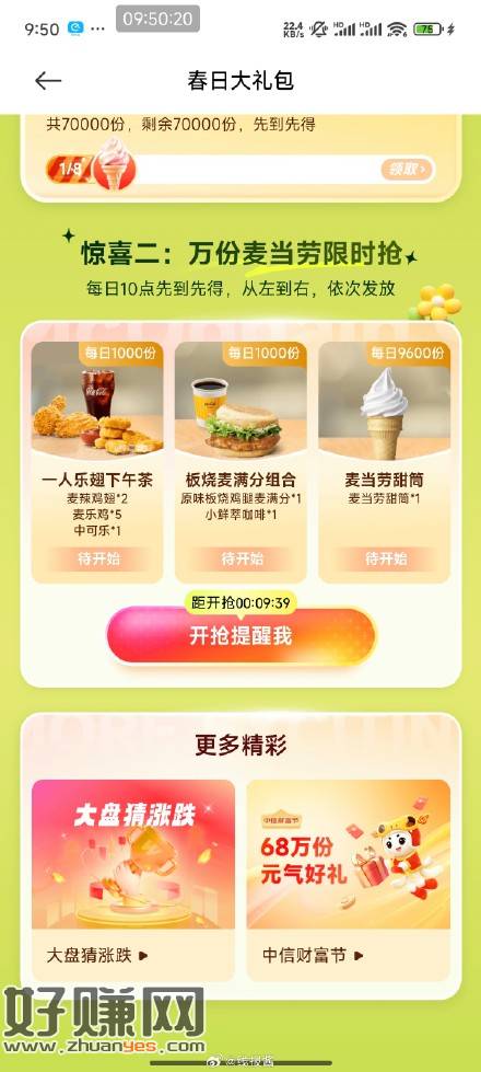 每天还有1000份一人乐翅下午茶1000份板烧麦满分组合,9600份甜筒
