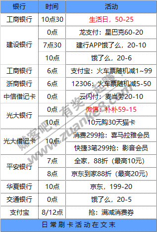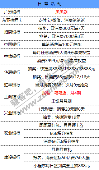 7月22号周三 各大银行活动优惠